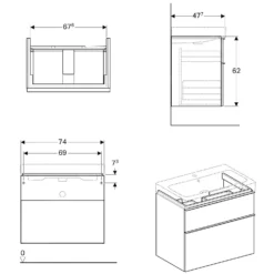 Geberit ICon – Wastafelonderkast 1184x247x476 Mm, 2 Laden, Glanzend Wit 502.314.01.2