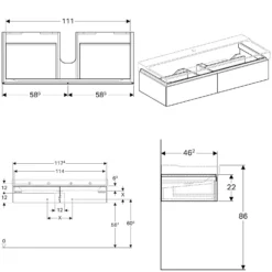 Geberit Smyle Square – Wastafelkast, 734x470x617 Mm, 2 Laden, Glanzend Wit/mat Wit 500.353.00.1