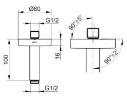 Keuco Edition 300 – Douchearm Voor Plafond Aansluiting, Lengte 100 Mm, Mat Zwart 53089370102