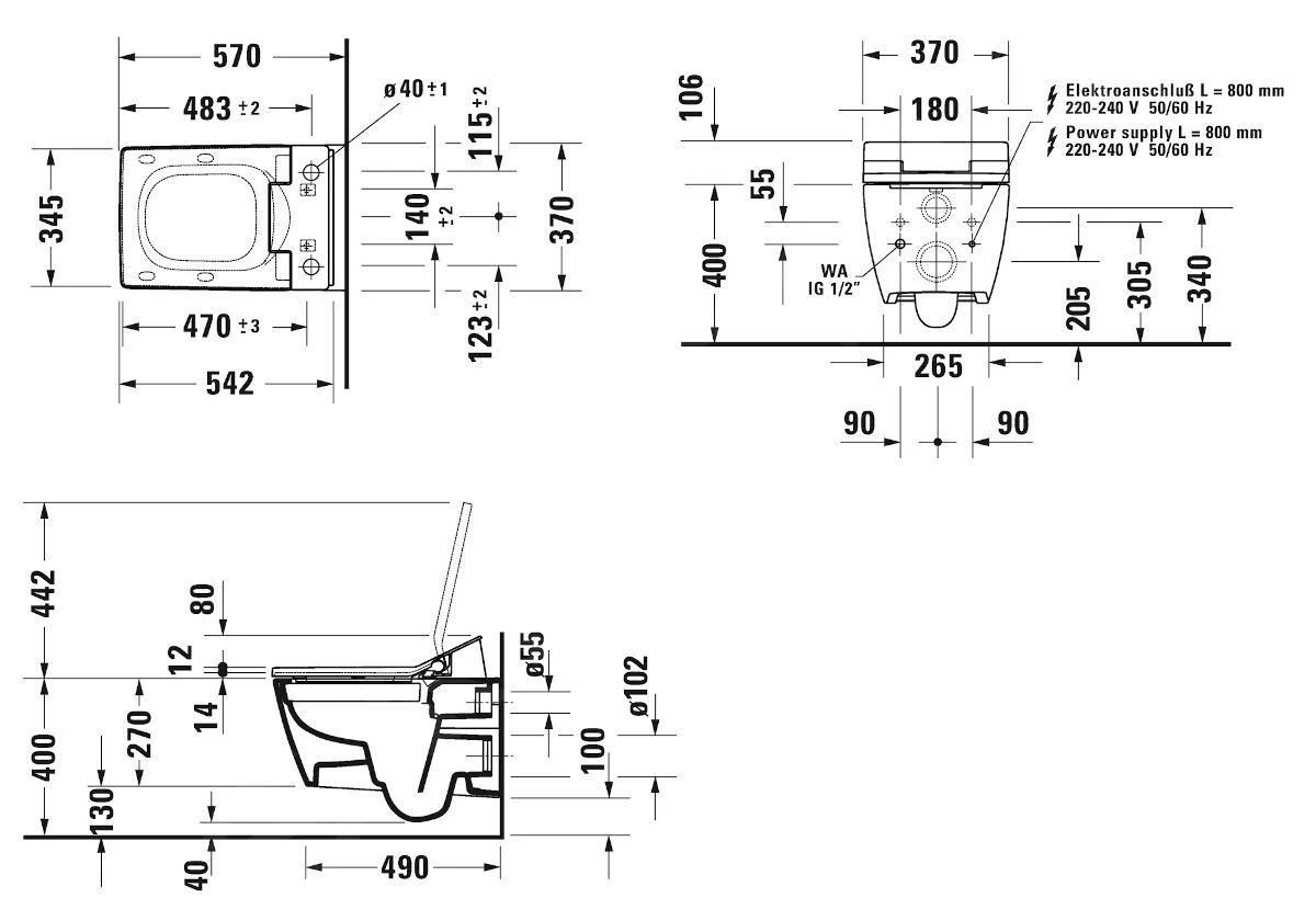 - installatie: wandbevestiging, alleen in combinatie met de SensoWash® closetzitting