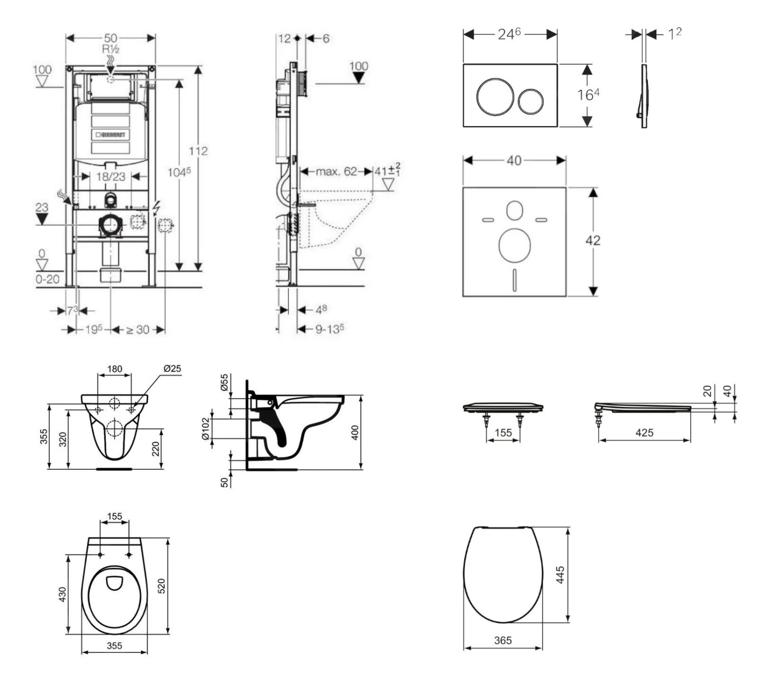- voor installatie in Geberit Duofix systeemwanden gedeeltelijk hoog of hoge kamers