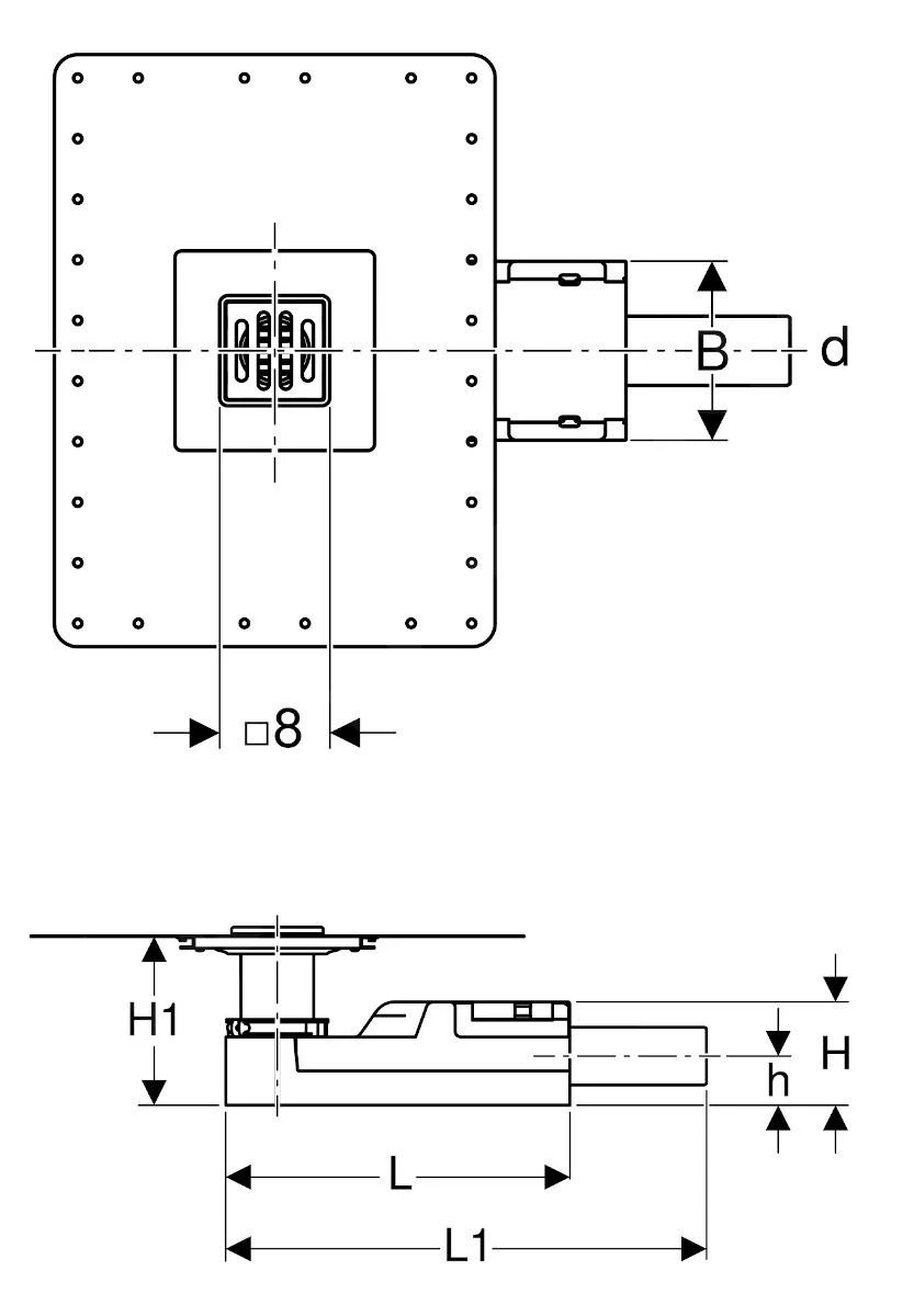 - afmetingen: B = 130 mm, H = 65 mm, H1 = 65-175 mm, h 32 mm