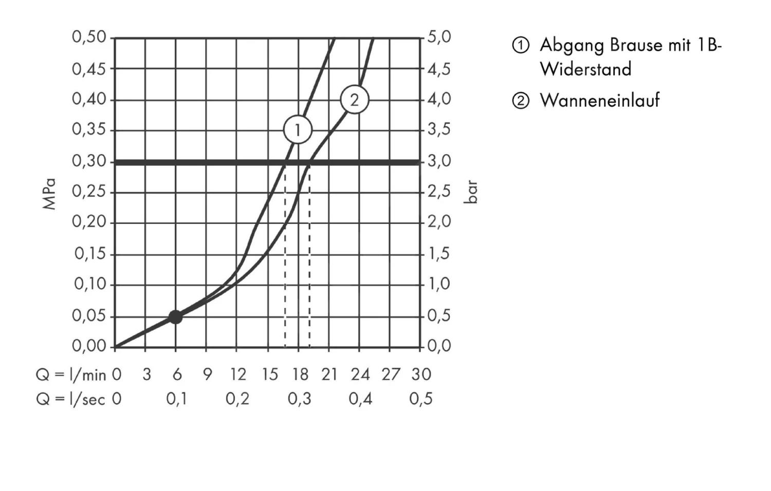 - doorstroming voor handdouche bij 0,3 MPA: 17 l/min