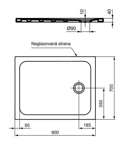 - één zijde van de douchebak (tegen de muur) is niet geglazuurd
