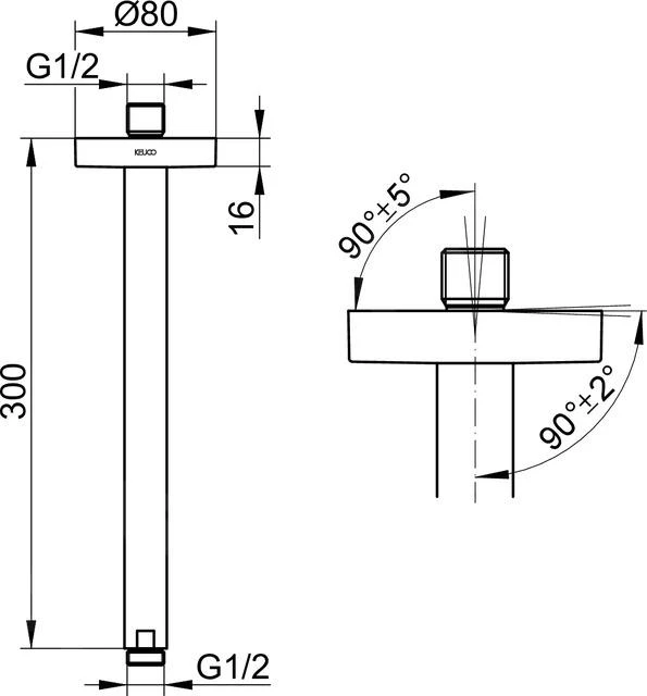 - totale lengte van de douchearm 300 mm