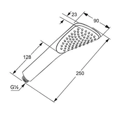 - totale lengte hoofddouchekop 250 mm