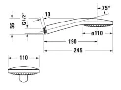 - afvoer aan de kortere zijkant, Ø 90 mm