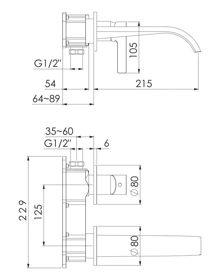 Inbouw wastafelkraan zonder inbouwdeel