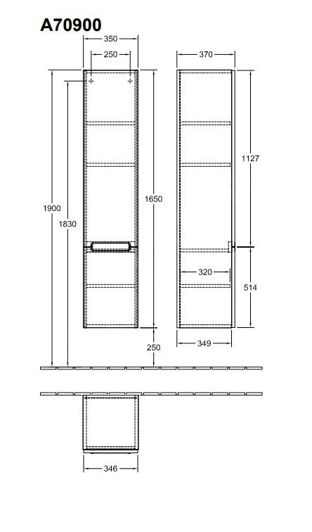 - afmetingen kast: 350 x 1650 x 370 mm (bxhxd)